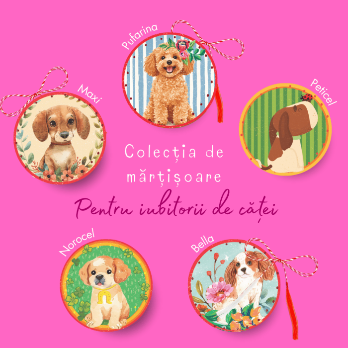 🐶 Mărțișoare cu Cățeluși jucăuși – adorabili și prietenoși, gata să aducă un zâmbet pe chipul celor dragi