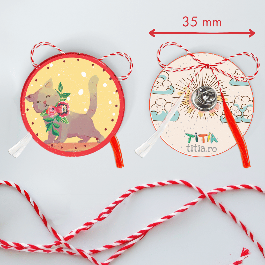 Mărțișoarele noastre sunt realizate din carton rezistent, frumos ilustrat, și prinse cu un ac metalic cu protecție pentru copii, împreună cu tradiționala ață a mărțișorului. Măsoară 37 mm în diametru, fiind perfecte pentru a fi purtate cu drag în această perioadă specială.