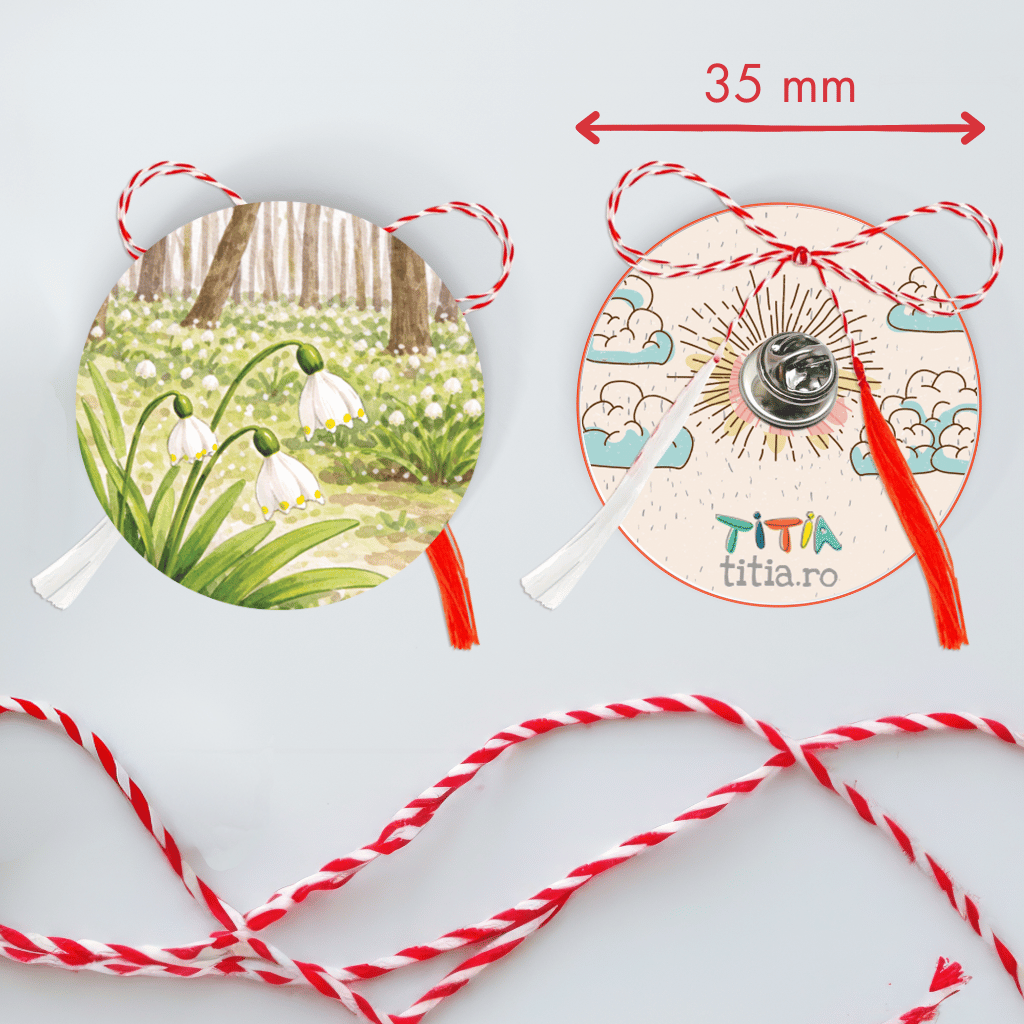Mărțișoarele noastre sunt realizate din carton rezistent, frumos ilustrat, și prinse cu un ac metalic cu protecție pentru copii, împreună cu tradiționala ață a mărțișorului. Măsoară 37 mm în diametru, fiind perfecte pentru a fi purtate cu drag în această perioadă specială.