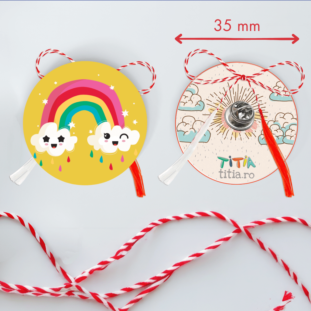 Mărțișoarele noastre sunt realizate din carton rezistent, frumos ilustrat, și prinse cu un ac metalic cu protecție pentru copii, împreună cu tradiționala ață a mărțișorului. Măsoară 37 mm în diametru, fiind perfecte pentru a fi purtate cu drag în această perioadă specială.